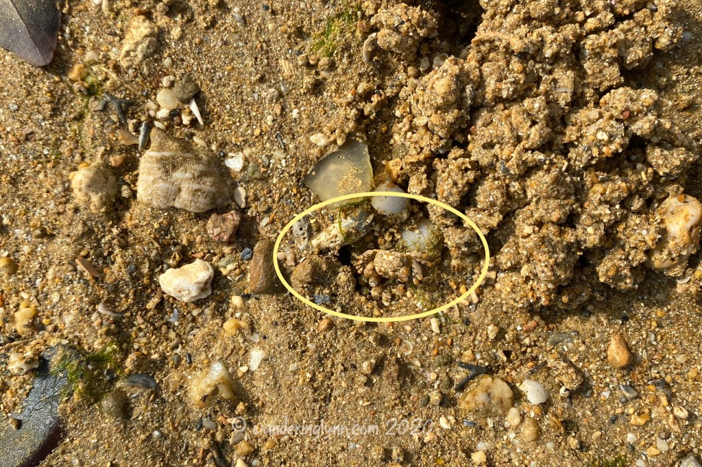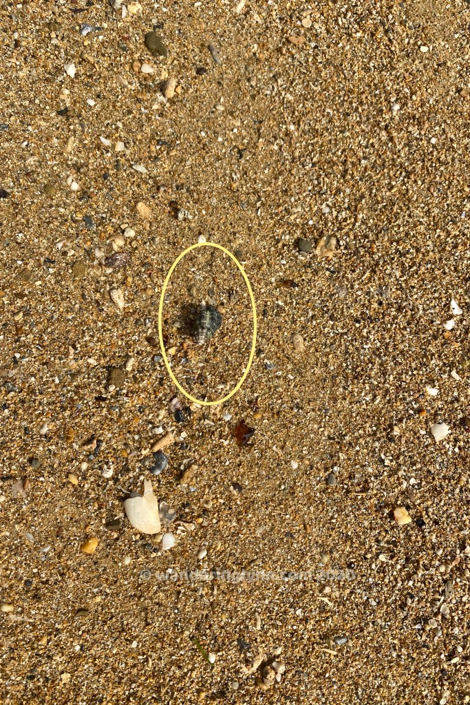 But I did have to be cautious picking up shells. Some of them were already taken. I found quite a few mini critters. So I moved my hunt away from the water and back to the high tide line so I wouldn’t disturb these guys more than I did.