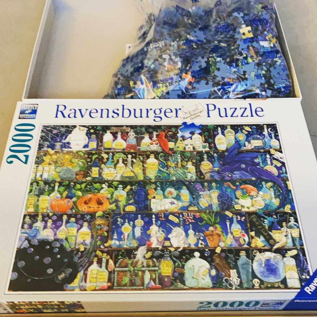 Last but not least, I always have puzzles to work. I finished the Crepes & Cie 1000-piece puzzle by MB puzzles this weekend and started Poisons & Potions, 2000-piece Halloween-themed one by Ravensburger. And I *might* have also ordered a few more, including Gibsons’ Christmas Around the World puzzle advent calendar, because one can never have too many books or puzzles.