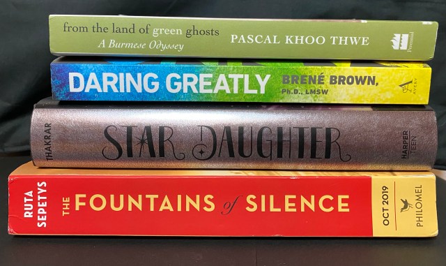 I’ve placed the first 4 books from the #bookspin and #roll100 reading challenges on my ottoman so I see them every time I sit down. As soon as I finish my library book (which is overdue), I plan to start Daring Greatly.