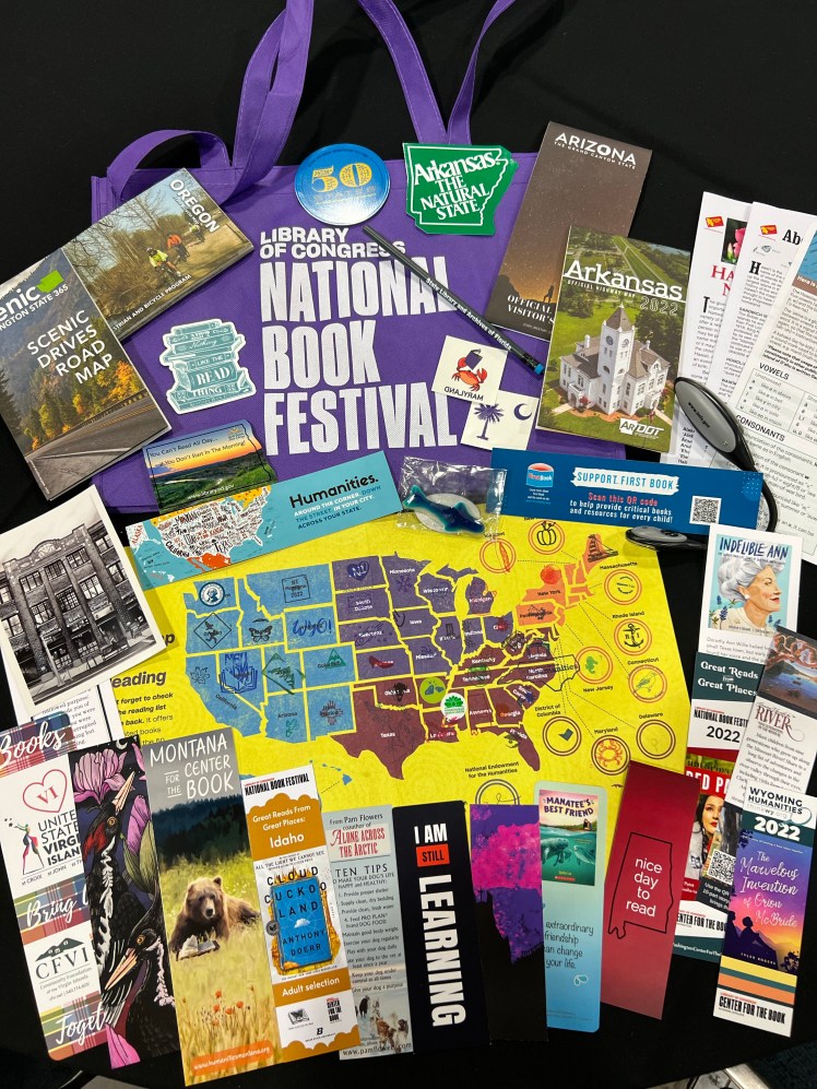 Next up, I headed to the U.S. States & Territory area. Each U.S. state and territory had a table to display the authors and books from that state. To make it more interactive, the LOC had a fun map to get a stamp from each state/territory. Kids and adults alike, me included, had so much fun wandering around the tables, collecting stamps, and seeing the various authors and books from each state/territory.