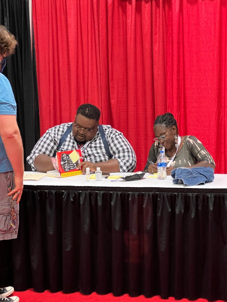 I then beelined back to the SFF Stage for Come Into My World: Vivid Places and People in Fiction with Tochi Onyebuchi and Leslye Penelope. Another amazing panel. It was so good in fact, that I raced back downstairs to buy Tochi’s book. And a good thing too, because the SFF table was nearly empty. Only a handful of Tochi’s book were available and many other books were sold out.