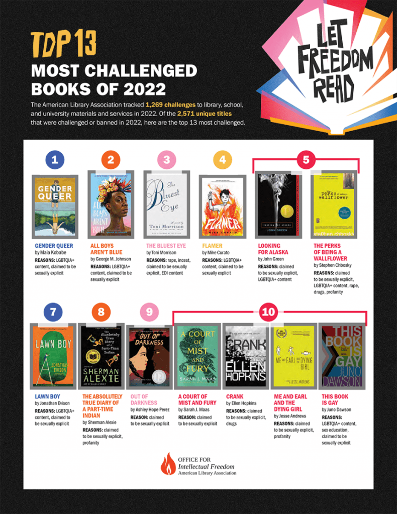 In 2022, the American Library Association (ALA), which hosts Banned Books Week, documented 1,269 demands to censor library books and resources. This was the highest number of attempted book bans since ALA began compiling data about censorship in libraries and nearly doubled the 729 book challenges reported in 2021.