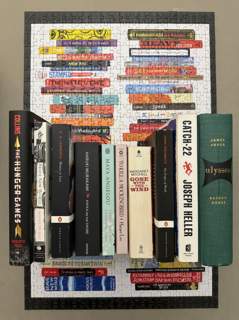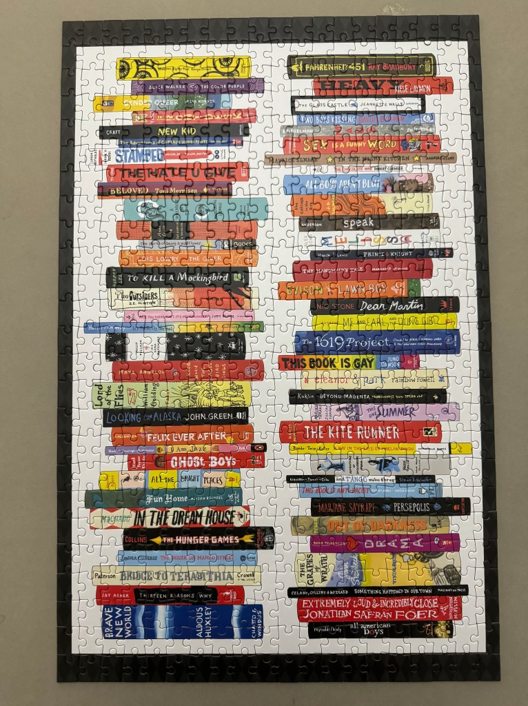 This 500 piece puzzle, art by Jane Mount and published by Chronicle Books, features 66 books, new and old, fiction and non-fiction, that have been challenged. And Chronicle Books is donating a percentage of profits from this puzzle to PEN America, which stands at the intersection of literature and human rights to protect free expression in the United States and worldwide. Its mission is to unite writers and their allies to celebrate creative expression and defend the liberties that make it possible.