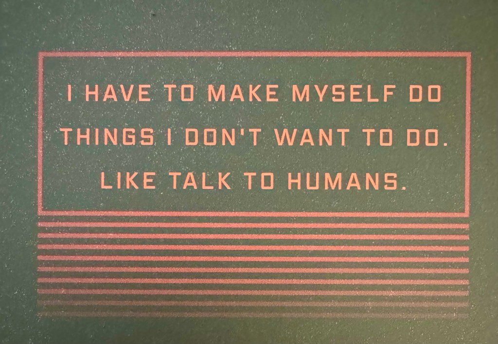 I love this series and recommend it to so many people (or rather everyone). Mostly because Murderbot is funny, captivating, charming, and, well, it’s a fucking masterclass in writing.