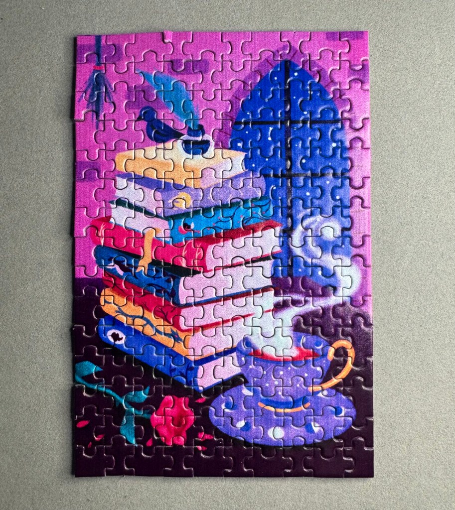 Last, I did the OwlCrate special puzzle from Micropuzzles. While not fantasy-specific, it’s all about bookish love with a cup of tea.
