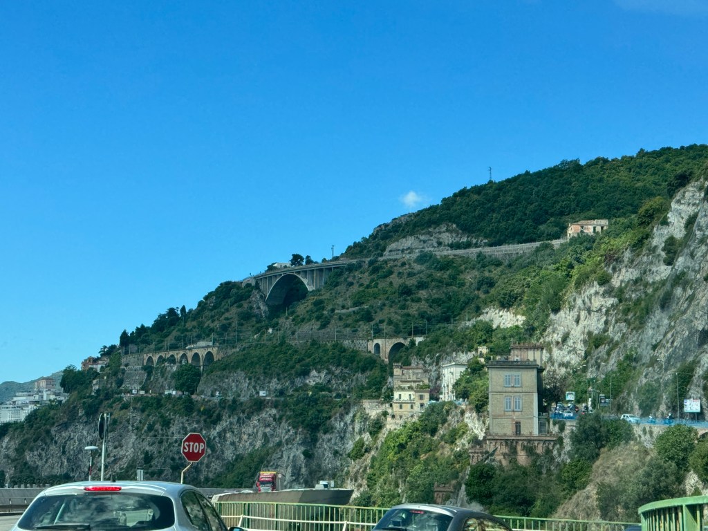 We drove into Vietri sul Mare on the A3, and then took the SS163 to Cetara. The SS163 not too bad considering (what constitutes a “narrow” road is not the same as the American standard of “narrow” road). But it is windy little road with some magnificent drop-offs.