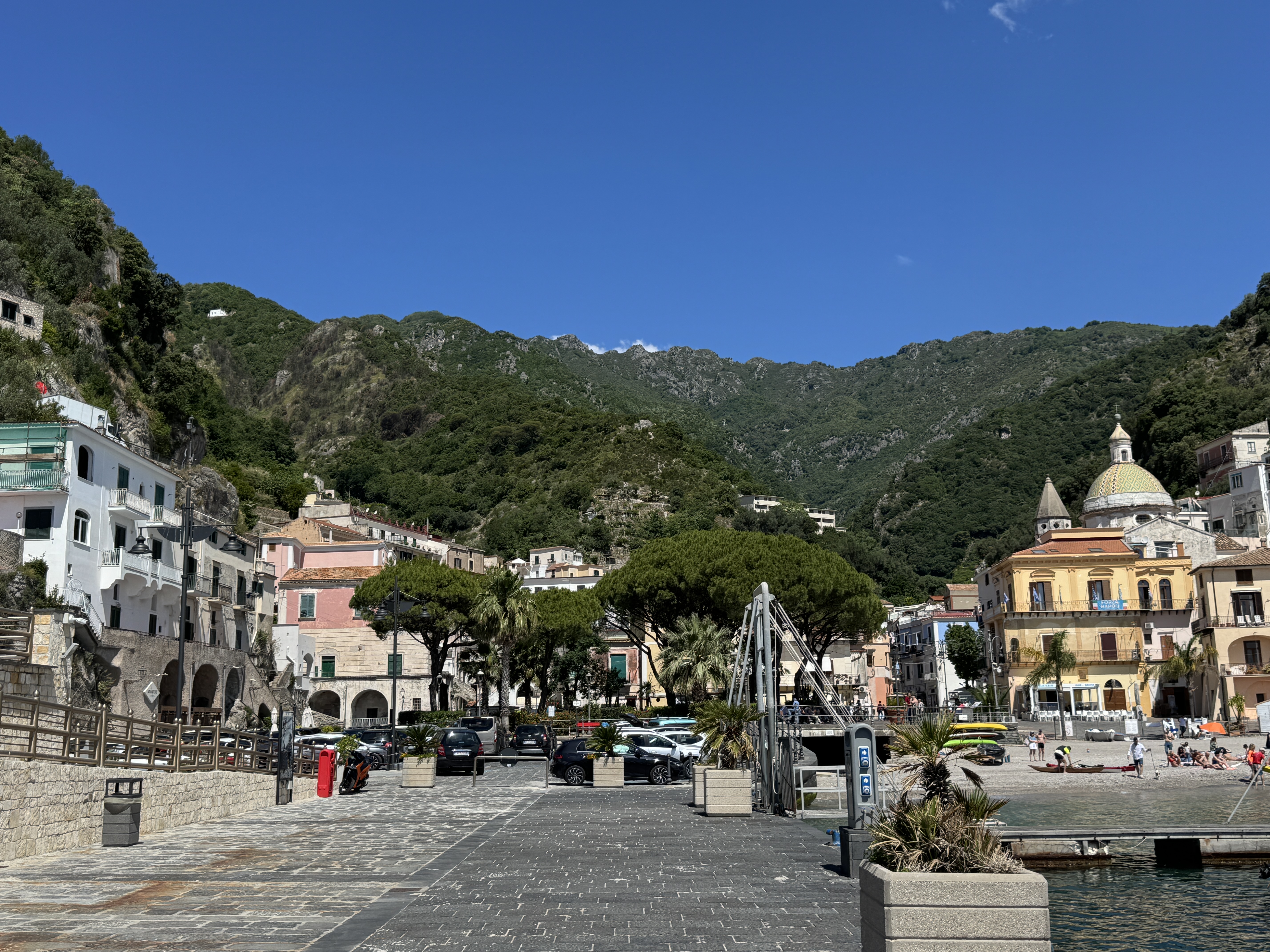 C volunteered to drive so I could take photos and videos.While we had originally intended to drive the majority of SS163, we changed our mind after first stopped in Cetara where we found a decent parking lot. (Parking is always a challenge in Italy, so when we find an actual parking lot, we use it.)