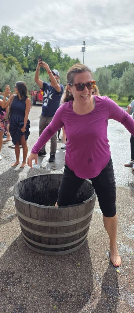 The winery then put some of the grapes in barrels so we could try the traditional grape stomping. I tell you now, it is not as easy as it looks because squashed grapes are slippery!