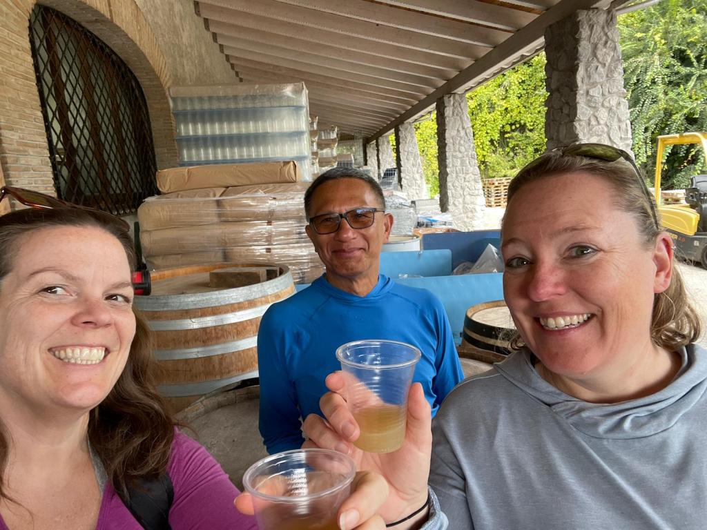 Antimo giving our group a bottle of spumante.Our first trip there was in June. The vineyard is about 90 minutes northish of MDP. We had so much fun and we learned they have grape harvesting tours starting in September through October. Several of my colleagues wanted to go too, so I arranged a group of 12 of us to go and we had the best time.