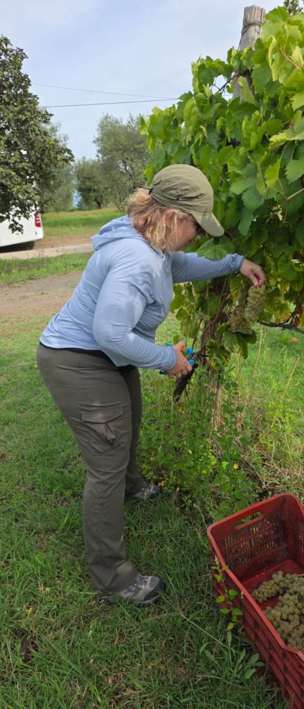 First, we headed to the vineyard to cut some grapes. There was a tour bus there too, so there were quite a few of us and we harvested numerous crates of grapes. I joked that I could have a career as a grape harvester if I ever needed a back-up plan.