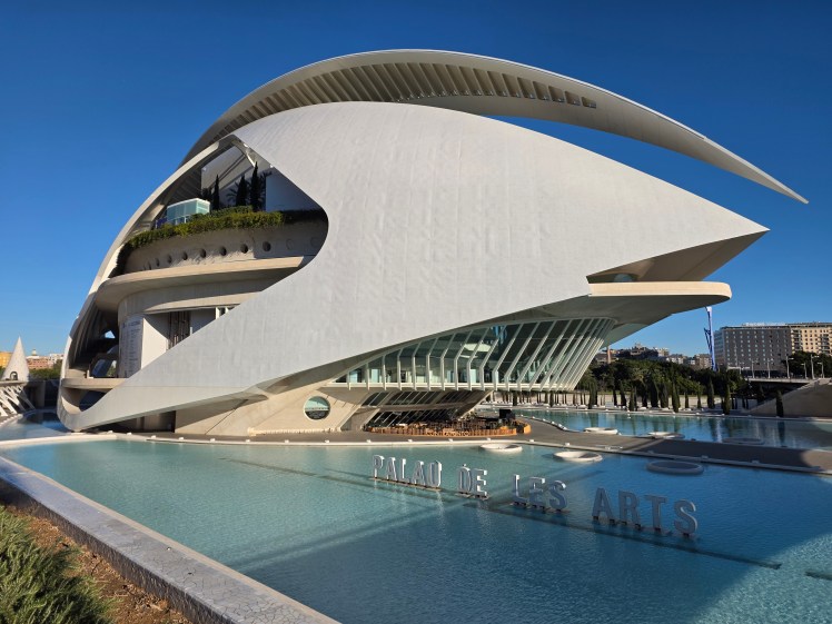 Valencia is also known for Ciudad de las Artes y las Ciencias (the City of Arts and Sciences), a complex with six main areas, including L’Oceanogràfic (Europe’s largest aquarium), Hemisfèric (IMAX cinema), and the Príncipe Felipe Science Museums, all housed in strikingly spectacular futuristic buildings. Designed by Santiago Calatrava, the complex stretches for almost two kilometres along the former Turia riverbed. We enjoyed walking around the Science Museum, which even had an exhibition on 500 Years of Genius: Leonardo da Vinci, which was fascinating.