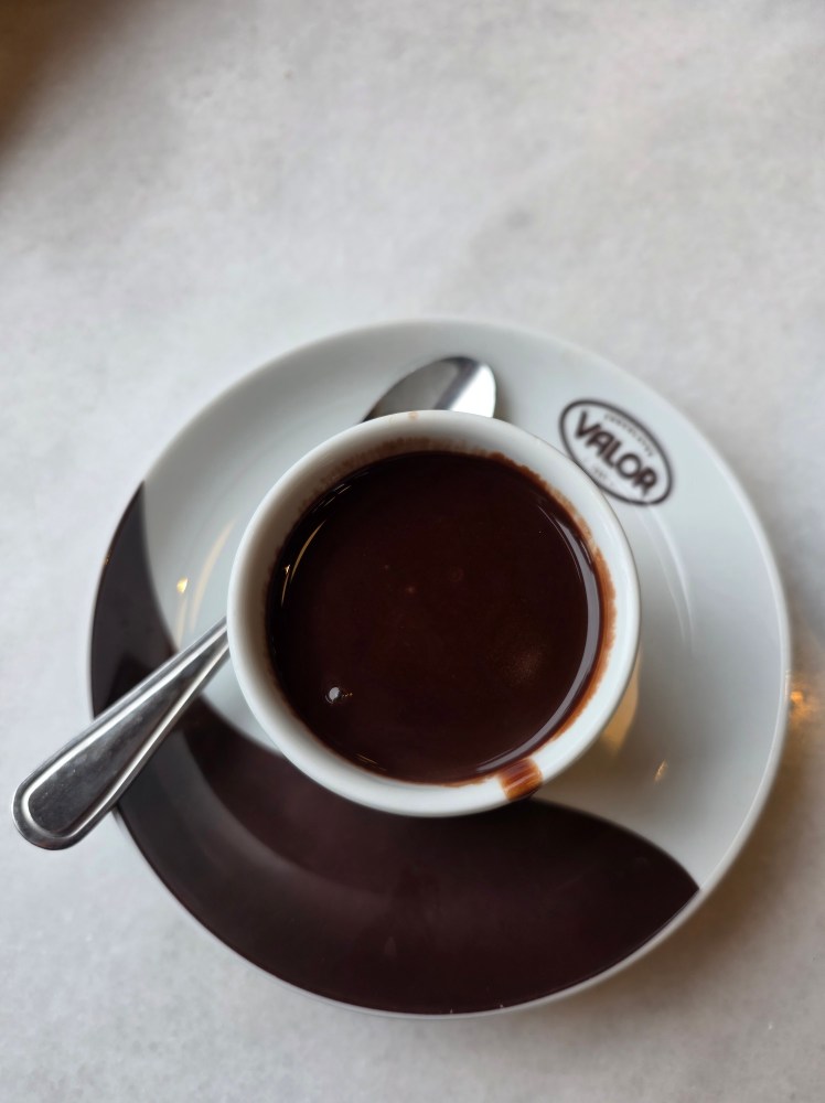 The hot chocolate is not what Americans think of hot chocolate, with our powder packets of Swiss Miss. No, Spanish hot chocolate is thick and rich, not watered down. Valencia has many chocolaterias, including Valor where I enjoyed several tazas (cups) of chocolate a la naranja (chocolate with orange).
